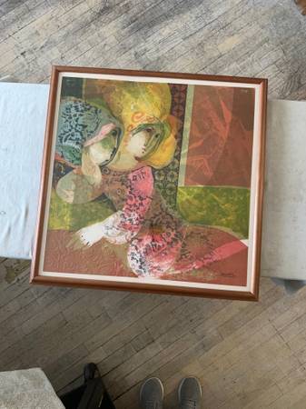 24 x 24 inside frame dimensions. 26 1/2 x 26 1/2 outside frame dimensions. Print was purchased 30 -35 years ago ??? , , can't remember.