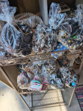 My garage is full of beautiful one of a kind jewelry and hundred of bags of as is jewelry and beads perfect for any art craft and harvest parts to make new jewelry for only $1dollar each please call me and pick up few bags at show contact info