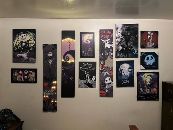 Tim Burton / Disney / Nightmare Before Christmas / Jack Skellington / Corpse Bride Wall art and more All in really good condition, 2 light up….actually 3 light up if you count the smiley face. $150