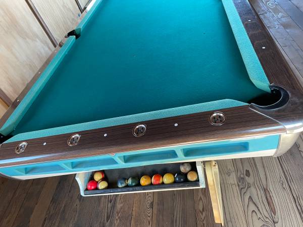 It is a beauty. This AMF professional pool table was produced in the early 60s. It has that sleek old car design look that was popular before the 1970s wood ones were made. We are asking that it be...