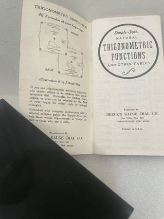 Include your number I will Text or call ONLY Derck's Simple-Fyer Dial & Trigonometric Function Tables Book Reference Booklet VERY GOOD CONDITION $20