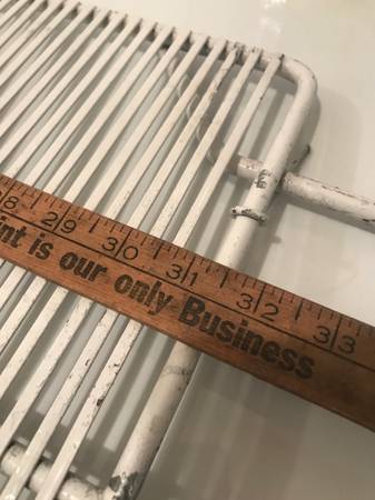 Vintage METAL RACK Include your number I’ll Text or call ONLY $20 31 1/2” X 15 3/4" 33 1/2” Tip to tip 3/8” BAR ON THE EDGES Handle folds flat