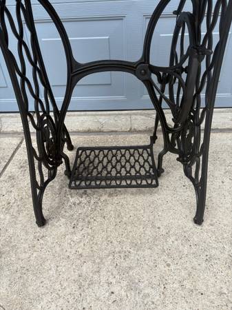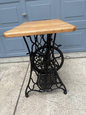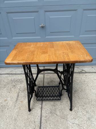 FOR SALE SINGER CAST IRON SEWING MACHINE BASE SIDE TABLE WITH SOLID OAK TOP