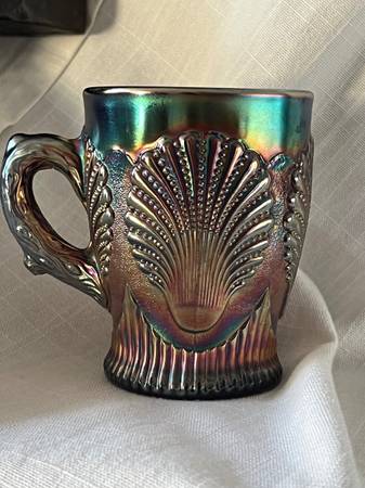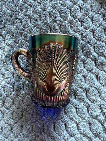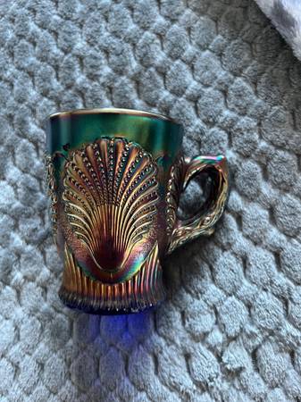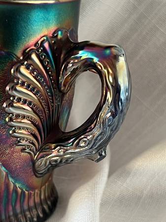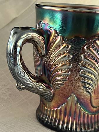 Condition: As with all vintage glassware, the condition of the mug can vary. Any chips, cracks, or loss of iridescence can reduce its value. However, carnival glass is often sought after for its aesthetic, even if not in perfect condition, as it remains highly collectible.