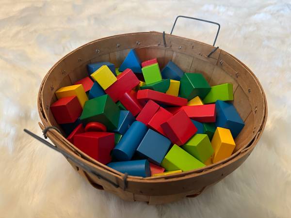 Solid wood blocks for building and play. Hand carved wooden blocks. 65 pieces In like-new condition. Purchased 2024 for $75 Ages 2-8 Reply with phone #