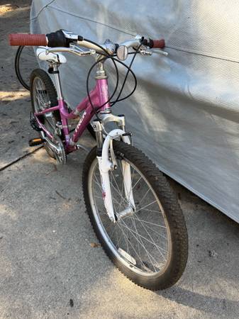 Trek Girl’s bike, front shock, 21 speed, Shimano equipped, Aluminum bike. 24” wheel (this is the category size as well), generally a good fit for 7-9 year old riders. My daughter rode this bike occasionally for about 2 years. Always stored indoors. This bike was a Trek replacement for the earlier frame that was recalled.