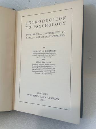 Include your number I’ll text or call ONLY Introduction to Psychology: With Special Applications to Nursing and Nursing Problems 1937 by Edward S. Robinson and Virginia Kirk $20. Very Good Condition