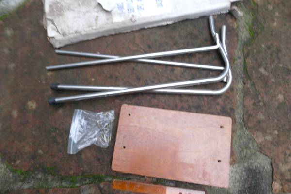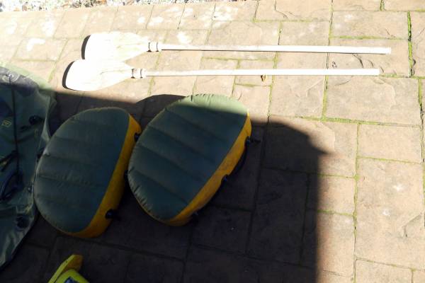 It comes with two seats, two oars, hand pump, and it has even wooden board for the motor. But not sure if that board harness is complete. I have added couple pictures of the motor harness, please look at the pictures above.