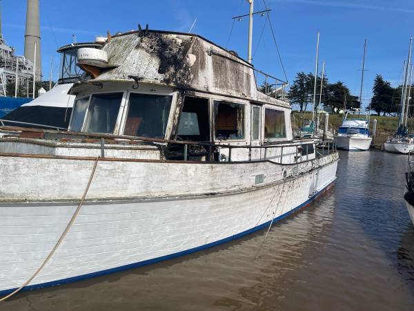 We are giving the boat away. It is in the Monterey Bay. We are going to keep the diesel generator out of it. It’s brand new. If you can see from the pictures, the boat was in a fire. The boat next to us caught on fire and hit ours . And will need to either be reworked or salvaged. Motors were running last year. Haul out three years ago and complete re-caulking on the haul . We had many of the planks replaced. At a cost of 20,000 . Also had all the fuel tanks replaced with stainless steel at a cost of 20,000 Must be able to assume the slip rent. Or make arrangements for immediate haul out and dry storage.