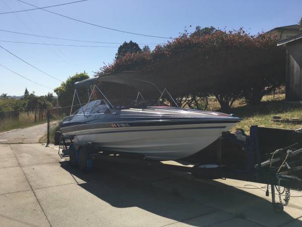 She’s 22.5 feet by the book. On the trailer about 27’ oal. Has a recent (ish) new 350 swapped in with the OMC outdrive serviced. Needs a new prop. Needs a new radio, the old US Marine gave up the ghost. Trailer tires are good. Trailer wiring has been patched together over the years and could use a complete redo. But the lights work.