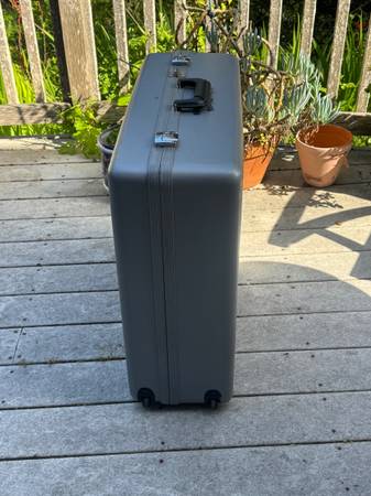Gray bicycle hard case travel with handle and wheels. 26” heigh 26” width , 10” depth . Good condition. Your bike frame needs to have S&S couplers in order for this case .