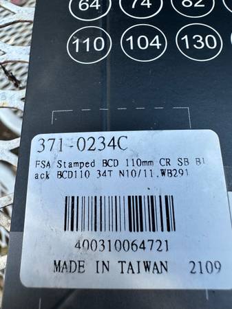 FSA Super Road 46t x110 BCD Aluminum N11 chainring and FSA Pro Road 34t x 110 BCD Aluminum N11 chainring. Picked these up for a project but decided to go 1x so these need a new home. Brand new, never installed, original packaging.