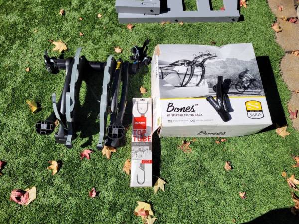 The Saris Bones 3 is a trunk mounted bike rack designed to carry 3 bikes. The Stop Tube is used for bikes without a horizontal top tube. Both have been used. Consult the Saris website to determine...