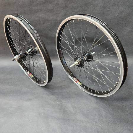 I'm selling a Schwinn XS 48h 20" wheelset. The rims are Alex AL-7X23D. There was a dent in the rear rim that was removed.