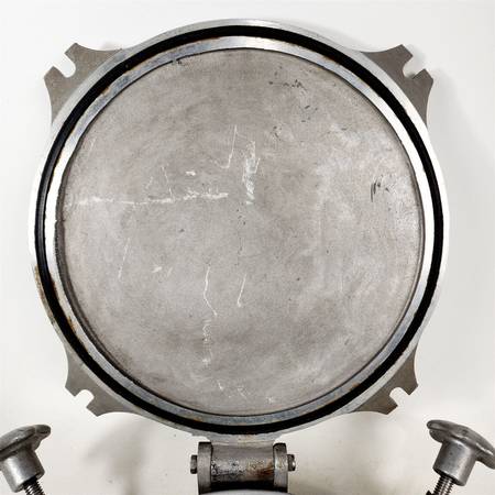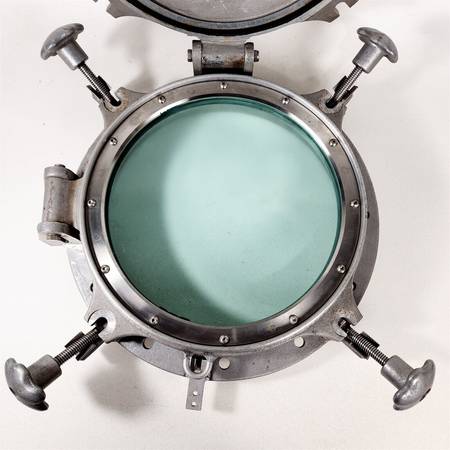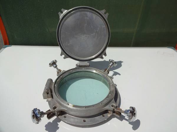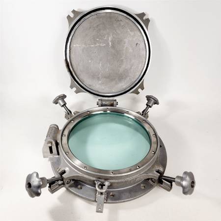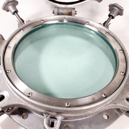 Solid aluminum cover can be closed over window making porthole light tight and as structurally sound as the ships hull when secured with it’s screw lugs. . This was obtained locally from a friends estate who served in the USN and sourced it during his enlistment.