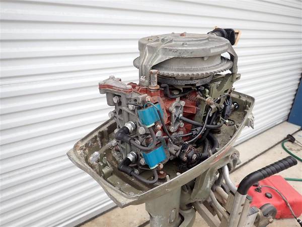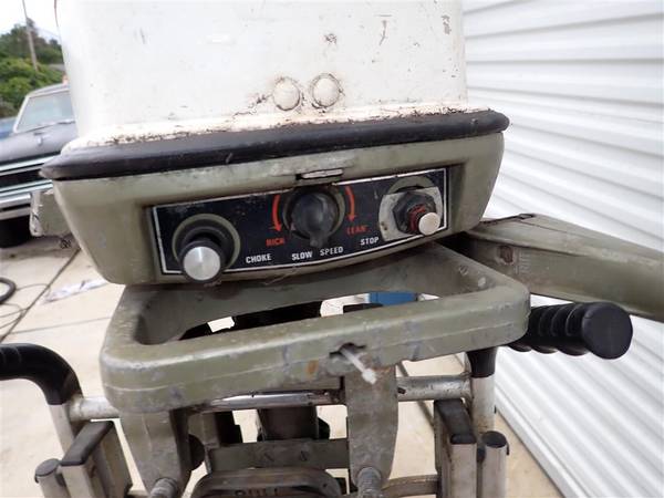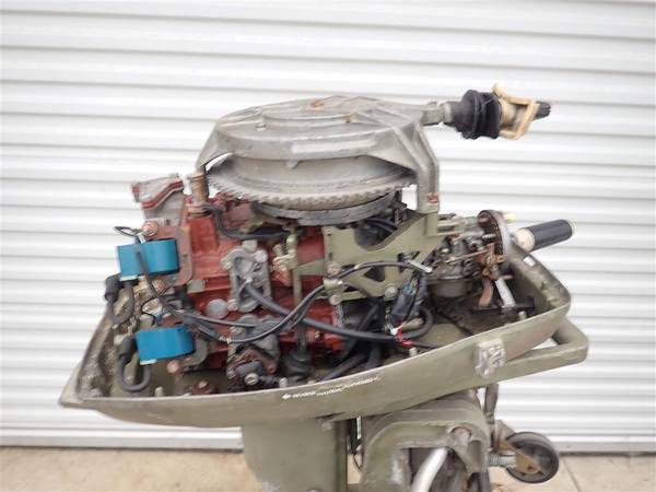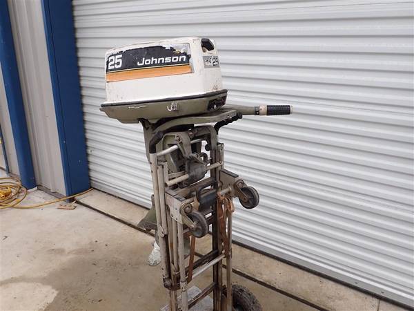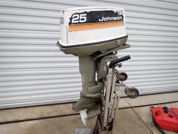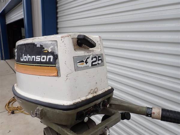 This is a Johnson 25HP outboard engine. It came to me out of an estate and I don't have any history on it. The shift lever is broken off and will need to be replaced. I was able to quickly start the engine and it seems to run well but I didn't run for long since it is in gear and I can't put it in neutral due to the shift lever being broken. This will be a good engine for someone with a little work.