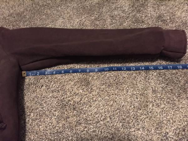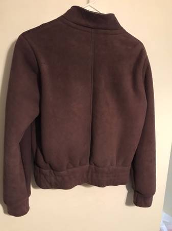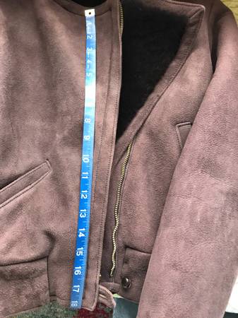 I have a Custom made Ladies Suede / Lined jacket.Warm / cozy motorcycle style. [Worn like 2 times] Custom made by "Cho". Sleeve length is aprox, 17 inches (see pics). Waist aprox. 29-32inches give or take.. time to let it goooo. Custom made by "Cho". Was a gift for My wife who was NEVER able to wear After giving birth to our first child.
