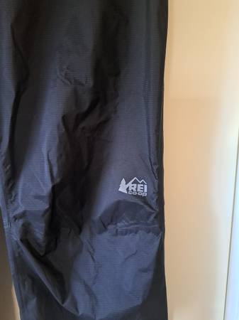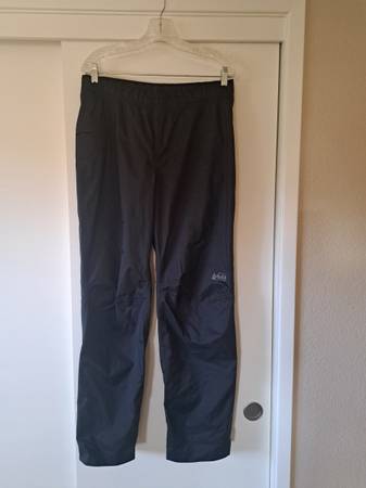 REI men's rain pants, black, size M. Draw string waist. Excellent condition.