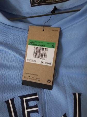 I have a brand new Nike Blue Jays jersey, never worn, smoke free household, paid $145 for it, only asking $80.00 for it.