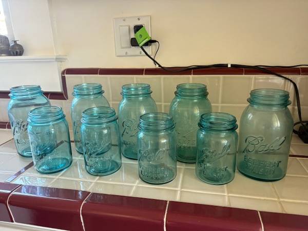 For Sale: -Vintage Ball Mason Blue Glass Pint Jars, $10/ea, 5 Jars Available -Vintage Ball Mason Blue Glass Quart Jars, $15/ea, 12 Jars Available These are original, from the years 1900-1923. In...
