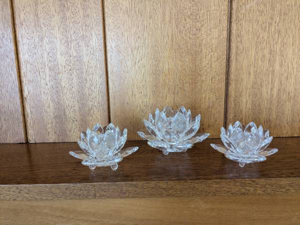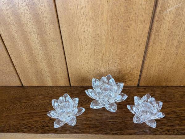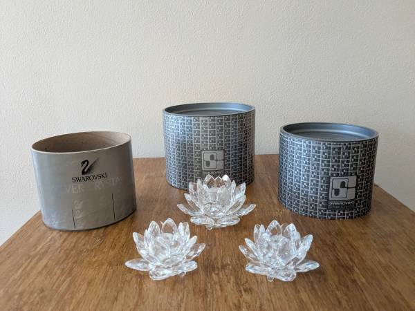 Swarovski Crystal Lotus Flower Candle Holders, set of 3, in original boxes 2 each #7600, 3" 1 each 4"