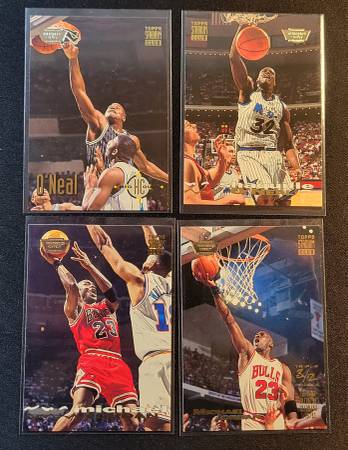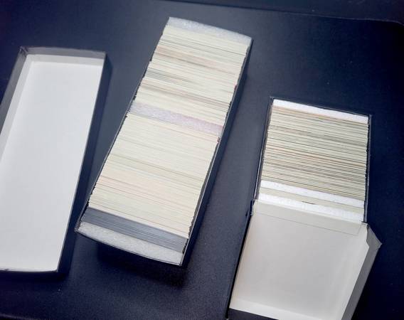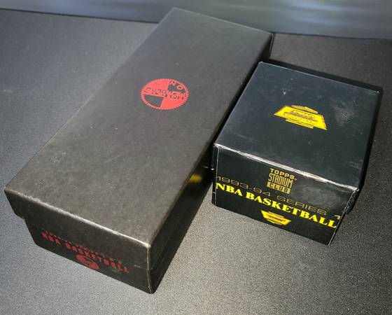 I found these boxes at a garage sale. These boxes seem like there were rarely handled. I checked 93-94 box and it is complete set. I Pulled a few cards to protect in penny sleeve/top loader from that series including Michael Jordan & Shaquille O'neal Beam Team - Members Only. The 94-95 box was so tightly packed, several cards were sticking to each other and have some damage. The most affected were the gold foil cards. It "appears" it is a complete set too, but I did NOT check if full set is there. The box has some damage on bottom corners.