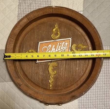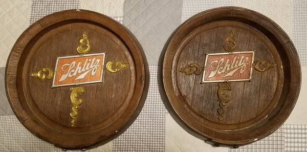 Vintage Schlitz Beer HEAVY Chalkware Barrel Head pair.