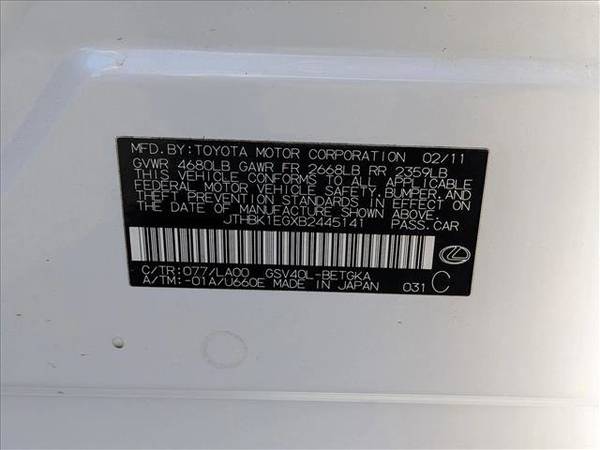 * Navigation System * Heated & Ventilated Front Seats * Sun/Moonroof * Intuitive Parking Assist * Leather Seats * Navigation System * Wood & Leather-Trimmed Steering Wheel * Rear Spoiler * Preferred Accessory Package * Pwr Rear Sunshade * Full-Size Spare Tire W/17" Alloy Wheel * Keyless Start * Rear Spoiler * Cooled Front Seat(S) * Parchment; Perforated Semi-Aniline Leather Seat Trim * Starfire PearlThis vehicle includes a Money-Back Guarantee* and passed our precise inspection process. Best of all the price you see is the price you pay. No haggling. No back and forth. No pressure. And this price is so good it is guaranteed. *Money-Back Guarantee is valid for 5 days or 250 miles, whichever comes first. Subject to certain terms and conditions. See store for details. Some restrictions apply.This outstanding example of a 2011 Lexus ES 350 is offered by Autonation Honda Fremont. The ES 350 has been lightly driven and there is little to no wear and tear on this vehicle. The care taken on this pre-owned vehicle is reflective of the 142,836mi put on this Lexus. There is no reason why you shouldn't buy this Lexus ES 350 . It is incomparable for the price and quality.You can finally stop searching... You've found the one you've been looking for.More information about the 2011 Lexus ES 350:The 2011 ES 350 shares its genes with the popular Toyota Camry, but it has been massaged by Lexus engineers into something much more than just the sum of its parts. The ES 350 is the quintessential entry-level luxury car with a host of standard amenities, innovative technology and a smooth 3.5L V6. It boasts all this and more for around $35,000, which makes it a bargain as well.Interesting features of this model are quiet ride and smooth road manners, strong, economical powertrain, Excellent fit and finish, and luxurious interior