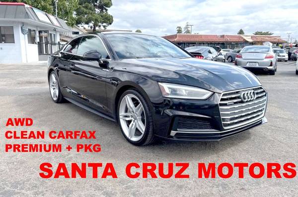 quattro, Black Leather. Clean CARFAX. 24/34 City/Highway MPG quattroAwards: * 2018 KBB.com 10 Most Awarded BrandsSanta Cruz Motors Where your business means a GREAT DEAL! Call Today 831-420-1911,Santa Cruz Motors Where your business means a GREAT DEAL! Call Today 831-420-1911 2018 Audi A5 www.scmotorsca.com Excellent selection of Used Vehicles, Financing Options, Serving Santa Cruz, Capitola, Soquel, Aptos, Scotts Valley, Watsonville, San Jose, Los Gatos, Gilroy, Morgan Hill, Monterey, Salinas, Santa Cruz County, Santa Clara County, Monterey County, San Benito County. ( YMM).