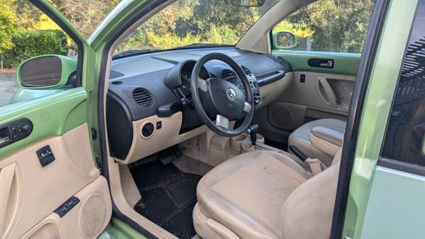 For sale: One of the nicest, most reliable 2002 VW New Beetle 1.8T Turbos you will ever find in California. My Mom bought this car brand new in 2002 and drove it around town for the first 60k miles. When she could no longer drive, I used it to commute for 50k miles, and then we used it to drive the kids to school for a few years. This car has been meticulously maintained throughout the years with over $21,000 invested into maintenance and repairs. It is extremely reliable and drives like a much newer car. This is NOT your typical 23-year-old Beetle with a laundry list of upcoming failures — everything that commonly breaks on the 1.8T has already been fixed properly with OEM or better parts. The seats are more comfortable than my Lexus, and the cabin is spacious to the point that it makes most other cars feel small inside. The car drives fast, straight, and smooth on the highway and you can really feel the power when the turbos kick in. I absolutely love this car but do not have room in the driveway for it anymore :(.