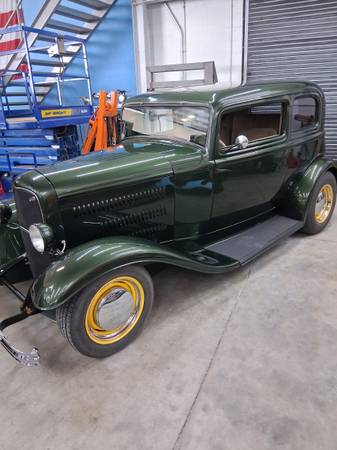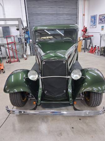 Superior Glassworks fiberglass body with modest 2"chop , aluminum hood and side panels on a custom built chassis . This is a one owner car built in 1995 with 8,338 miles that has always been professionally maintained and housed at Miller Speedsports it's entire life . Flawless dark green paint , attractive tan cloth individual front seats with a bench rear , original 32 rear luggage rack .
