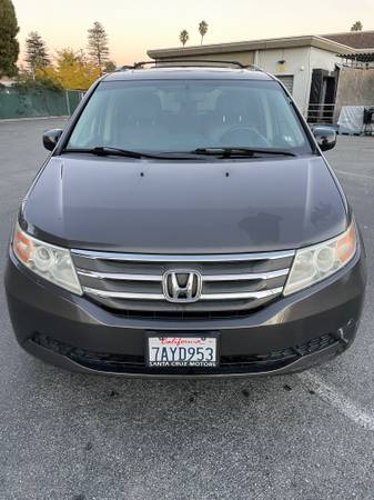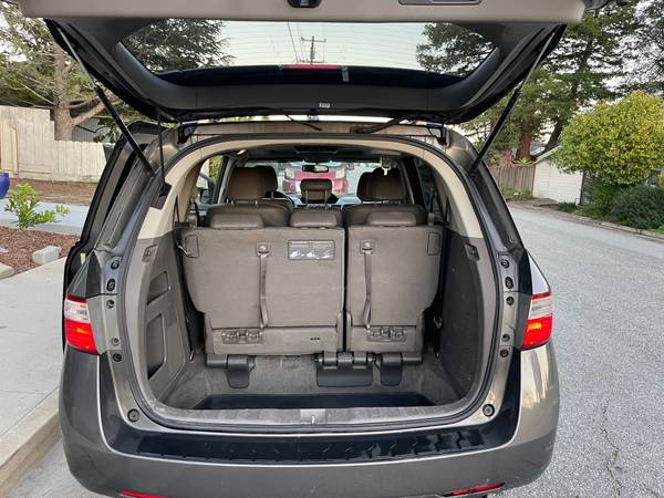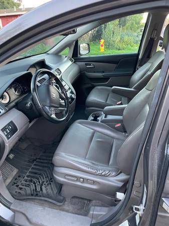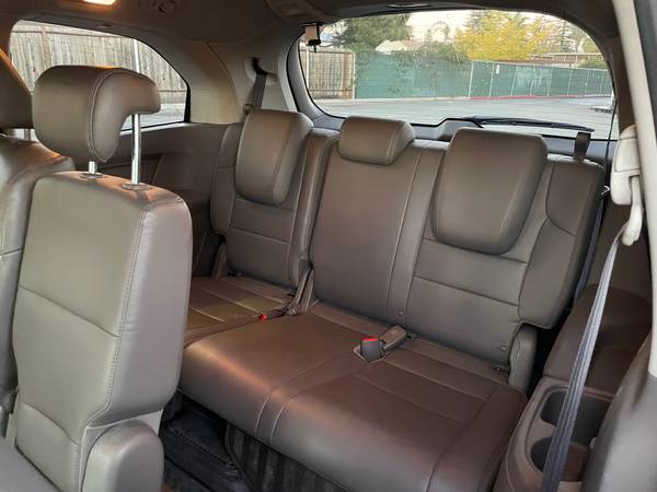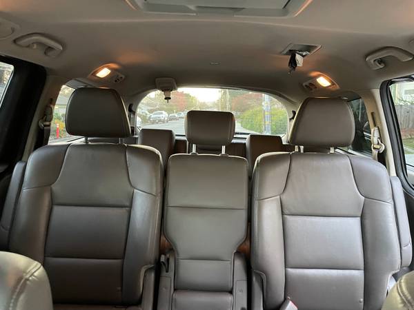 Leather gray interior. 8 passenger seating. Dual power seats. Power sliding doors and rear door. Back up camera. Dual air bags. Bluetooth wireless, AM/FM radio. CD & DVD system. Moon roof. Daytime running lights. Pull up shades on rear windows. New tires, bought in July. Comes with hitch so you can attach a bike rack.