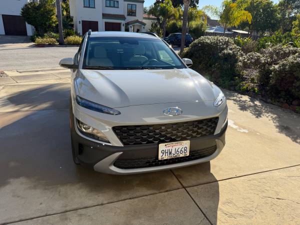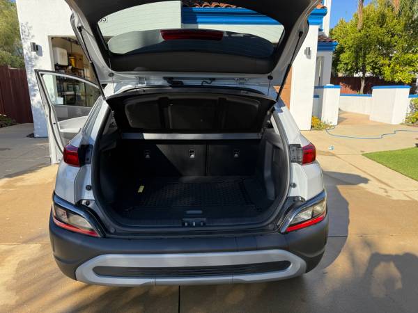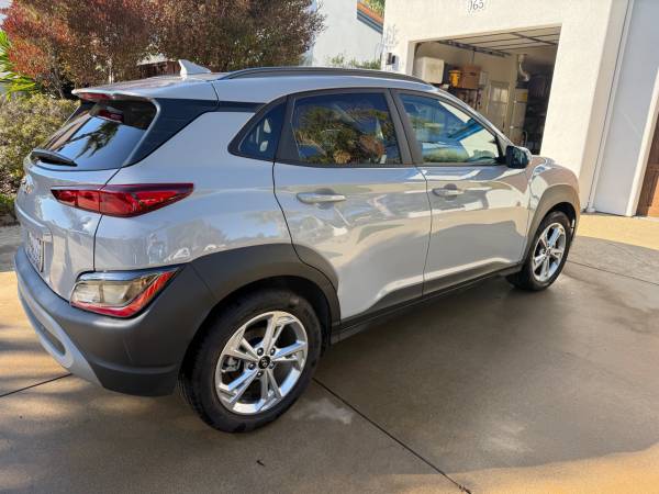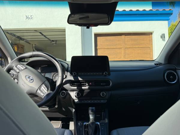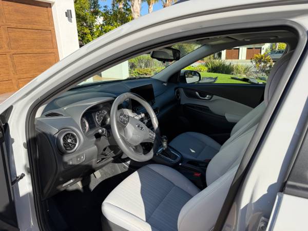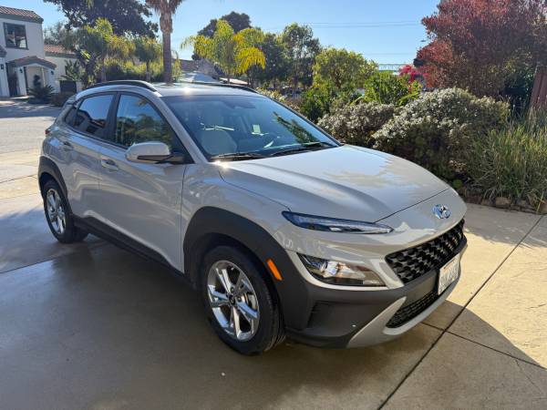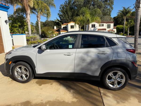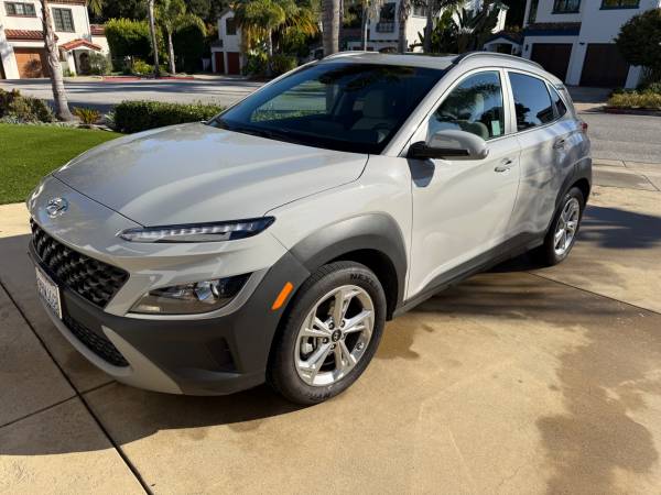 I am selling a like-new 2023 Hyundai Kona SEL FWD compact SUV with just under 4,300 miles. Cyber Silver exterior with gray interior. 2.0 4-cylinder engine with automatic Intelligent Variable Transmission, including several drive modes. This Kona accelerates to speed quickly, is fun to drive, and gets great gas mileage. Transferable new vehicle warranty extends to 5 years/60,000 miles. Great entertainment console with Apple Car Play and bluetooth. Air conditioning blows cold. The SEL Convenience Package adds a power sunroof, upgraded 10.25" touchscreen display, and heated front seats. This Kona has several safety features, including collision avoidance, blindspot monitoring, and lane keeping assist. Great storage with the rear seat folded down. The tires are like new and there are weather tech mats front and rear. Clean title in hand. Overall, this is a great vehicle in like-new condition. I am selling because we only need one vehicle in retirement. Thanks for looking!