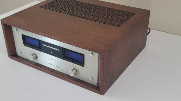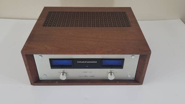 Moving to a smaller home and need to sell some equipment. I have a Marantz 250 power amp in the original wood cabinet. If you're familiar with Marantz you know that this dates back to when Saul Marantz owned the company and they were known for their excellent products. The 250 was their best amp at the time, and was rated at 125w per channel. The amp works well with no issues besides the right meter bulb is a little dimmer than the left. The wood cabinet is an extremely rare early original model with a wooden fretwork grill on top, not the metal mesh found on later models. You can see a video of it working here: https://youtu.be/XGn8Cl7dxOs