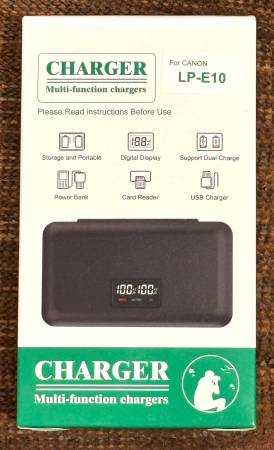 Brand new charger with two LP-E10 batteries for Canon cameras listed below. Brand new, never used (my camera is not on the list). Check it out on Amazon : https://www.amazon.com/dp/B0FPLD1M3Z.