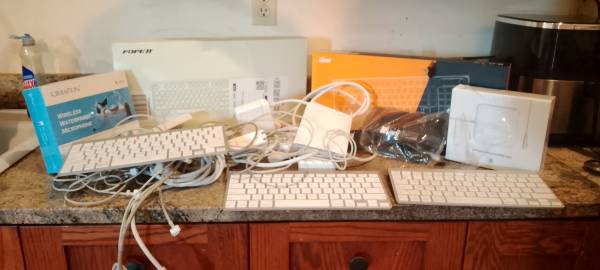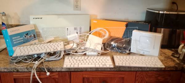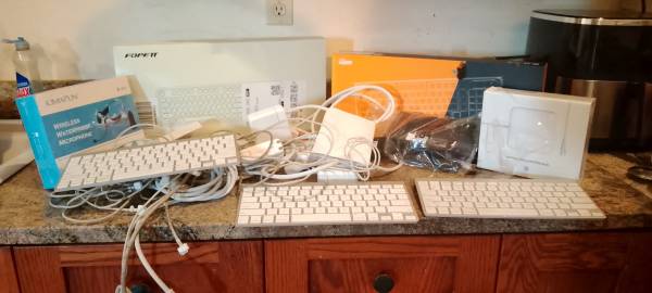 I have a lot of Apple Magsafe chargers, Apple wireless keyboards, 2 new wireless ergonomic keyboard mouse bundles, usbc-hdmi adapters, some wireless mice, underwater wireless headphone, about 4 Apple Macbook Pro and Macbooks working and parts., 3 working HP laptops... Send your offer...