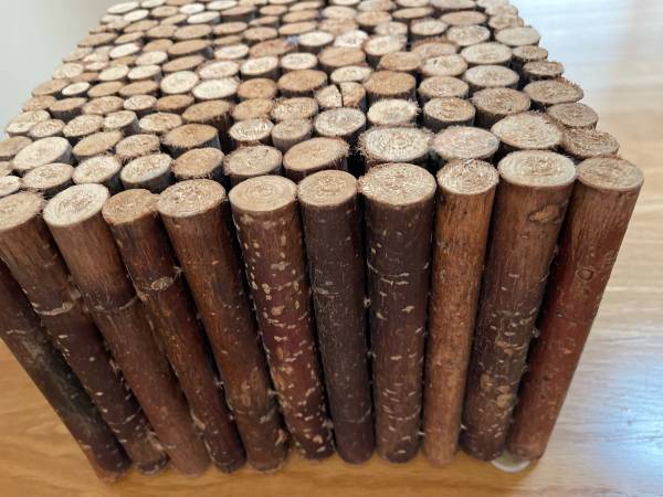 Unique 10 x 10 wooden block made from wooden sticks Various uses as shown (cactus not included) As a plant stand. It’s a sturdy piece Email me if you’re interested