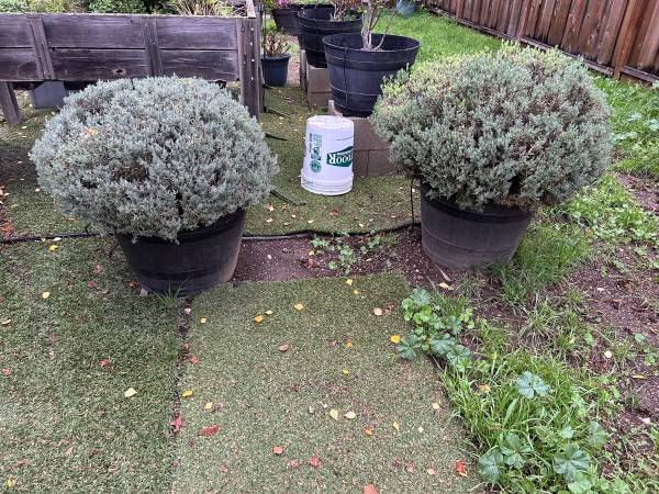 * 2 mature plants in plastic barrel planters - 1 purple, 1pink- currently dormant, but pictures show their color - $40 each