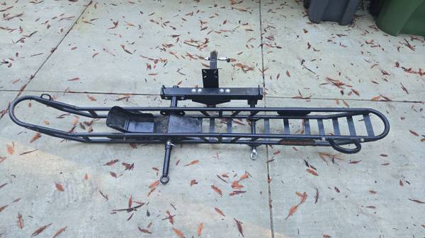 Mockins Tilting motorcycle hitch carrier. Tilts so bike is easy to load. I bought it one year ago but have since bought a trailer. Not really using it anymore. Please see link below for list of full...