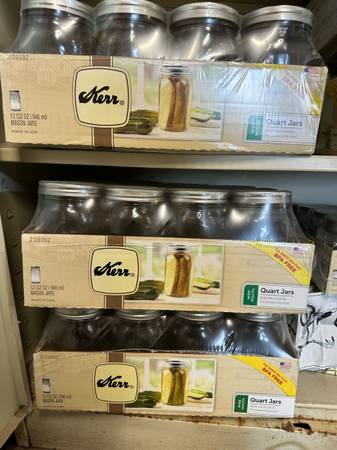 3 cases of 12 glass quart jars, NIB. Lids included. I bought these and never needed to use them. $57 of you want all three, OR $20 a case individually. Located in Hollister for pickup or meet up...