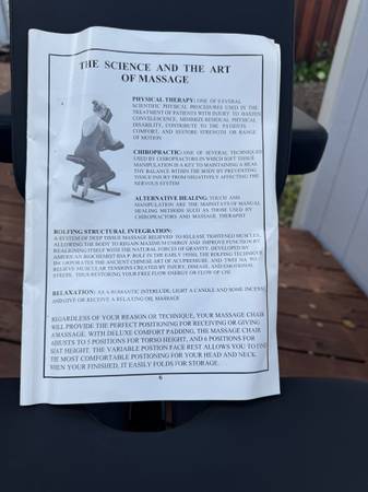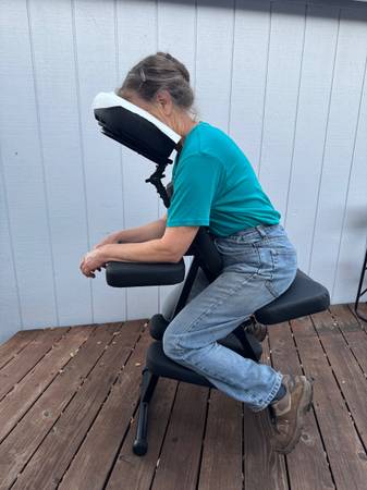 Brand New massage chair, only used once! Folds up for easy transport to locations. Use at fairs, health retreats, etc. Soft material and comfortable to sit/lean in. $250 OBO Cash only *Located in...