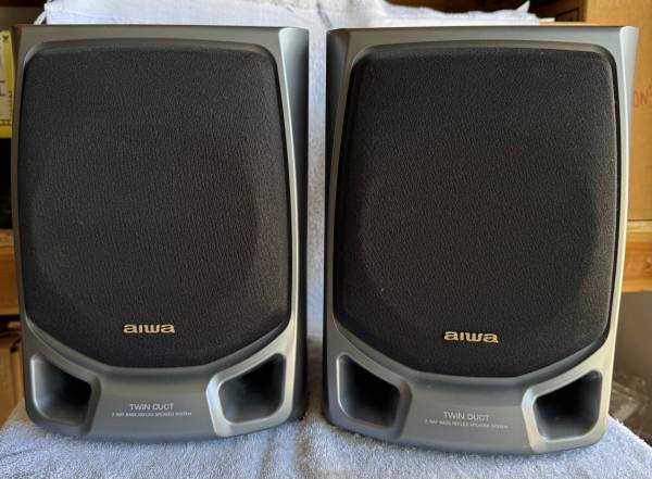 AIWA Twin Duct 2 Way Bass Reflex Speaker System 12 inches tall 9 inches wide 10 inches deep