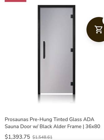 I just bought this door from Haven and Heat for $1,200. It is top quality and beautiful, but I changed the design of my sauna and it arrived before I could cancel the order. I am an architect, so I'm very picky about what I buy. Here is some helpful information: