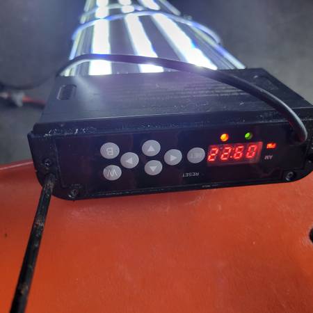 Roughly 36 inch capacity.\n White and blue LED s programmable.\n Call me please . Easy live oak pick up