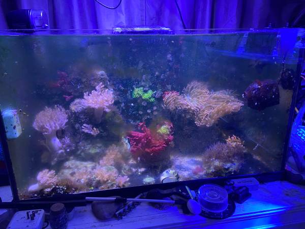 Saltwater Tank rimless Drilled 75 gallon tank, stand and sump, I just took the system down upgrading to a 125 Thanks for Looking Happy Fishes
