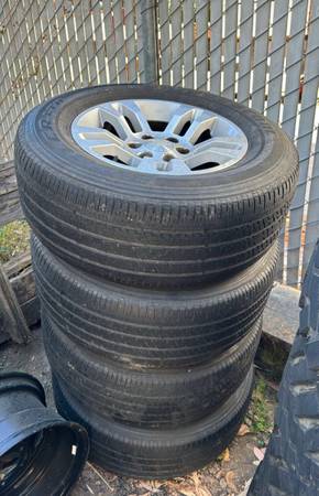 Used wheels and tires! Tires Still has life left on them!! Stock 2016 Chevy Wheels in great condition! Need to sell ASAP! CASH ONLY $500 OBO The size is 275/65R18 And the lug pattern is 6x5.5 Text...
