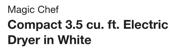 Magic Chef Dryer for apartment or smaller living space. *WHITE * H 32.2 in, W 23.6in, D 21.5 in We no longer need the dryer, mainly we used during winter to dry clothes.