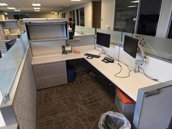 300 stations in stock — premium Herman Miller Canvas systems with glass, worksurfaces, panels, and storage.