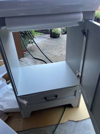 Material Cabinet is made of Medium Density Fiberboard (MDF); top is white vitreous china.