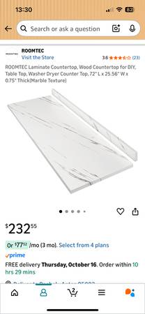 Marble Look / Texture Laminate Countertop, Wood Countertop for DIY, Table Top, Workshop / Washer Dryer Counter Top with edging.